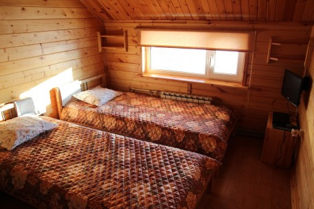 Комментарий: чистый воздух, сосновый лес, песчаный берег, прозрачная вода, отличные условия проживания, - все это сделает Ваш отдых незабываемым! Летом озеро прогревается до температуры, пригодной для купания. Песчаный пляж и пологий вход. В окрестных лесах можно собирать грибы и ягоды - бруснику, чернику, голубику, на болотах спеет клюква и морошка! Организация охоты и рыбалки на высоком уровне. Большой выбор дополнительных услуг.